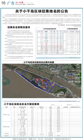 关于小干岛区块征集地名的公告