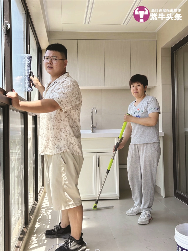 平女士说,和儿子共事一年半,基本没有遇到难沟通的客户,“尽管我们是做保洁的,对社会贡献不算大,但客户也挺尊重我们的。经常有客户说帮我们安排了午饭,尽管我们会婉拒,但心里暖暖的。有一位客户从头到尾没来现场,只是告诉我们大门密码,我们进入打扫,中午还让人送午饭,验收也没有来现场。他对我们如此放心,我们自然也不会辜负客户,努力把活做细致!”张平说,未来他会一直干下去,感觉这一行很有前景,有了积累之后会开一家家政公司。来源:紫牛新闻