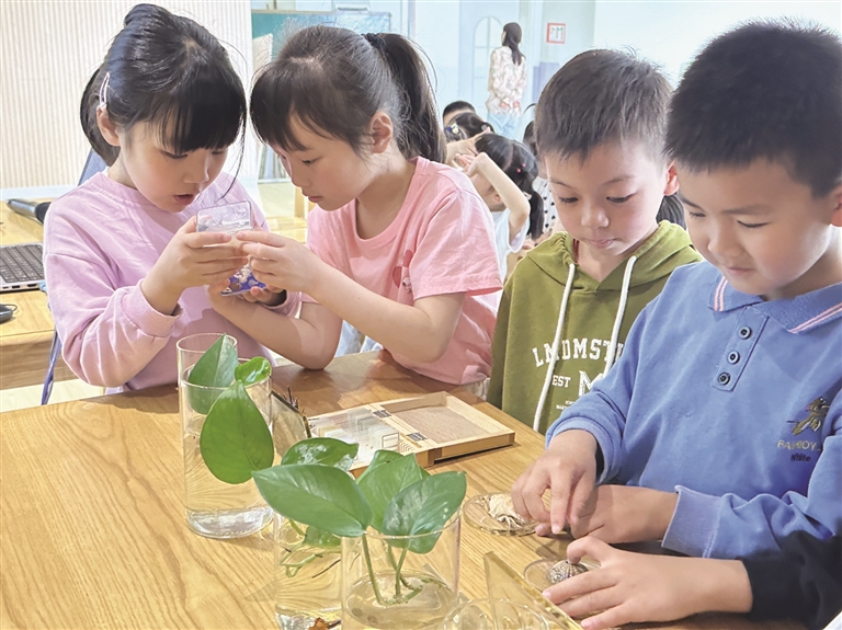 “其实虎鲸会吃掉鲨鱼,它才是海洋霸王呢!”近日,浙江海洋大学水产学院的代小新博士以家长身份走进普陀城北幼儿园,开展了一场“海洋”主题儿童友好科普活动,以通俗易懂的语言为孩子们科普了海洋生物种类的多样性,并指导孩子们使用显微镜和放大镜观察细胞以及螃蟹、鲎、海胆等标本,让他们对海洋动物有了更直观、深入的感知。