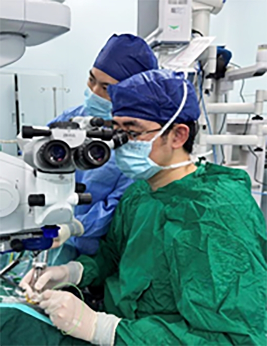 “我们在眼球壁上打三个‘小孔’,将照明、切割与灌注三个精密手术器械通过小孔直达眼球内部,同时在手术显微镜下,联合视网膜镊、视网膜激光进行切除玻璃体、积血;剥离视网膜前膜、增殖膜、机化膜;封闭视网膜裂孔等操作,完成视网膜脱离、糖尿病视网膜病变、黄斑前膜、黄斑裂孔等常见眼底疾病的手术治疗。”毛剑波说,黄斑疾病手术,仅能在眼内几个微米级别的范围下进行操作,手术难度可想而知。