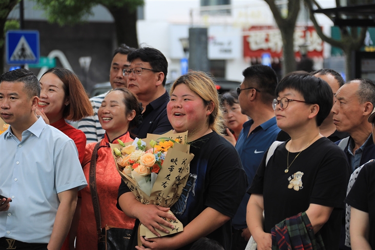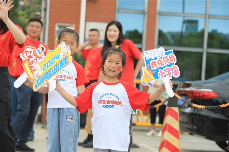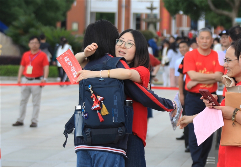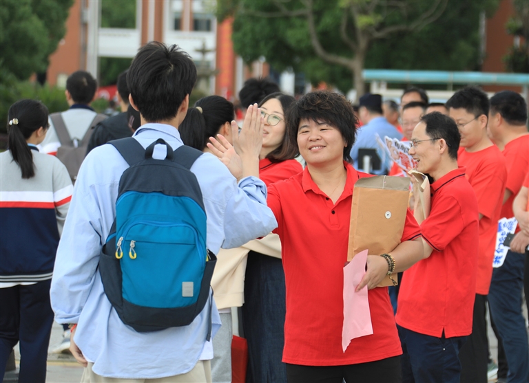 昨天,在舟山中学、定海一中等考点,站在校门口的老师及家人朋友正在为考生加油鼓劲 记者 陈永建 张磊 摄