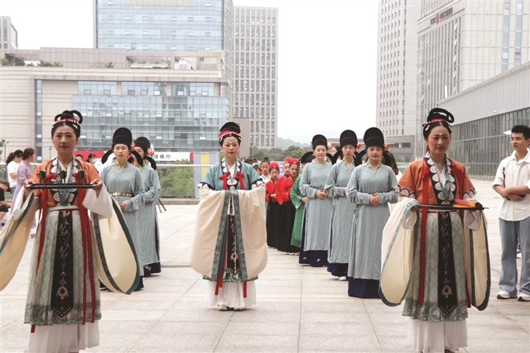 今年端午假期,我市汉文化协会的端午活动也热闹得很,既有传统的包粽子、赛龙舟、射五毒,也有汉服走秀、非遗体验等创新项目,更有慰老服务、文化下乡。年年端午,这群汉文化爱好者正不断尝试让传统佳节重现古韵,同时融入现代创新形式,让这个假期展现国潮风。