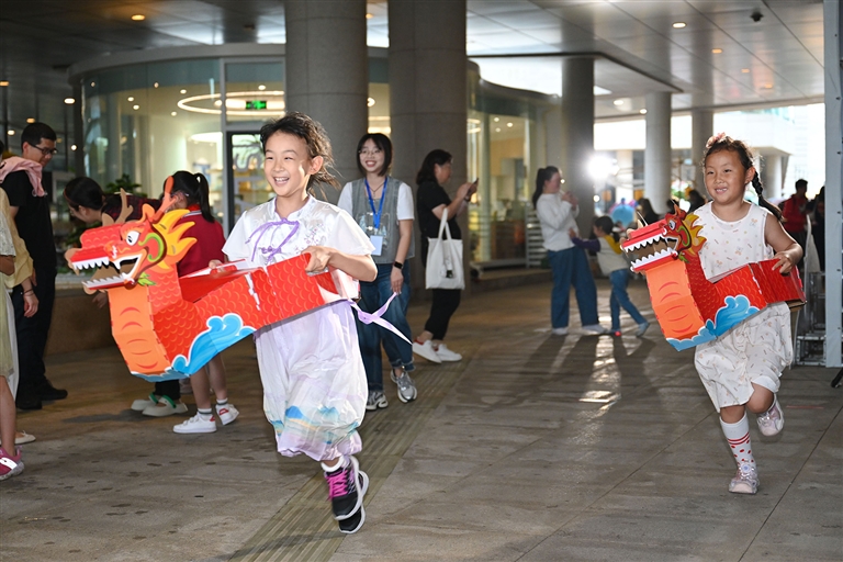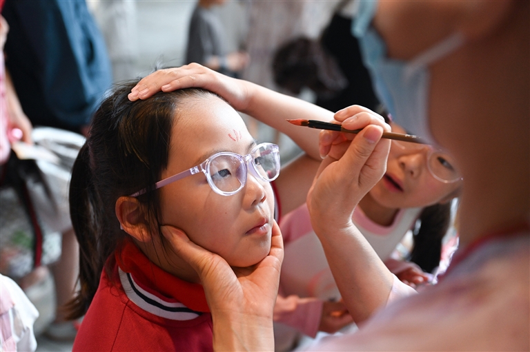市海洋文化艺术中心活动现场,点雄黄、驱五毒 图/姚凯乐