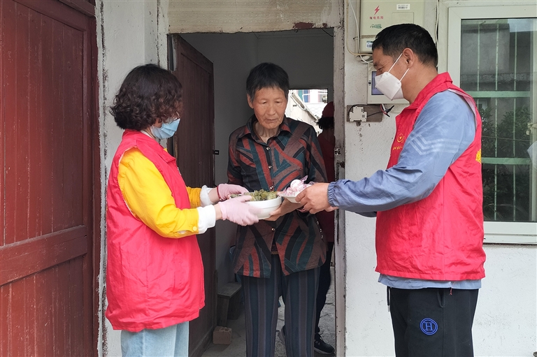 岱山县暖心社会工作室志愿者为小长涂岛上的空巢老人送上节日慰问和祝福 图/滕海平
