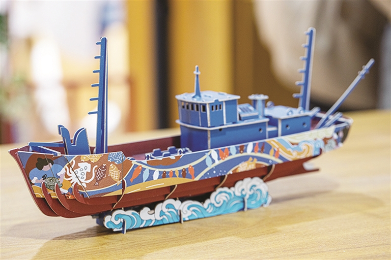 此外,将非遗做成文创产品也是扩大其影响力的好办法,在舟山博物馆的文创研发中心,记者也看到了种类丰富的文创产品,款式好看且兼具实用性。如国家级非遗项目传统木船制造技艺的代表性海船“绿眉毛”运输船,在这里以艺术船模的形式呈现,拼装过程有趣,成品逼真美观,船帆上还绘制了渔民画,可谓“舟味”满满。除了非遗相关文创产品,这里也有不少馆藏文创,如取用明荷叶螭虎纹犀角杯元素设计的瓷杯,灵感来源于清乾隆铜胎雕漆葫芦形瓶的香具等。“目前我们已有在售文创产品30余件,涉及香器、茶具、文具、日用品等。”石玉华说。