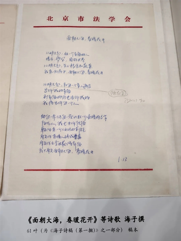 5月27日,海子手稿永久寄存仪式在国家图书馆举行。本次永久寄存国家图书馆的海子手稿共计10种1592册叶,包括海子的诗歌创作手稿,少量他人整理抄写的海子诗稿,以及海子本人书写的笔记、札记等。创作手稿中不仅包括短诗,还有诗人创作转型后的《太阳·七部书》诗稿。人民文学出版社将与国家图书馆以及海子家属密切合作,仔细整理、出版、开发,以飨读者。