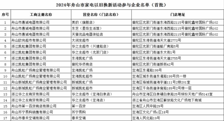 今天8时起,我市组织开展家电以旧换新活动!首批参加活动的企业(门店)名单公布。