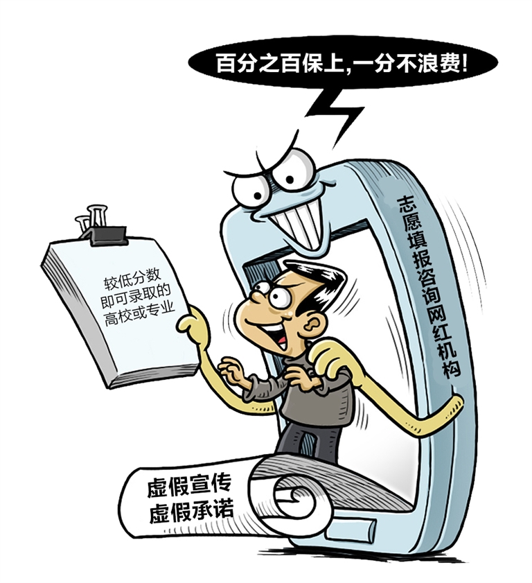 2023年,教育部梳理汇总了近年来一些虚假诈骗案例,并公布了其形式特点,包括“假冒所谓志愿填报专家身份”和“假借咨询服务名义进行诈骗”。教育部表示,有的机构声称“百分之百保上”“一分不浪费”,但实际上为了提高所谓的志愿填报成功率,鼓动考生填报较低分数即可录取的高校或专业,损害考生的正当权益。