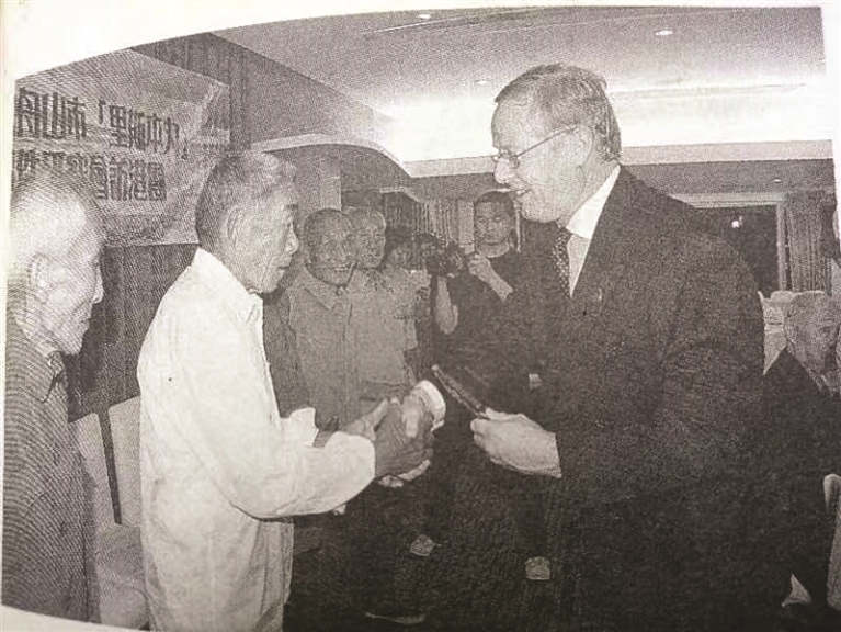 陈永华等老人的回忆,赢得阵阵热烈的掌声。英方代表泰莱先生特地向5位老渔民赠送了纪念品。