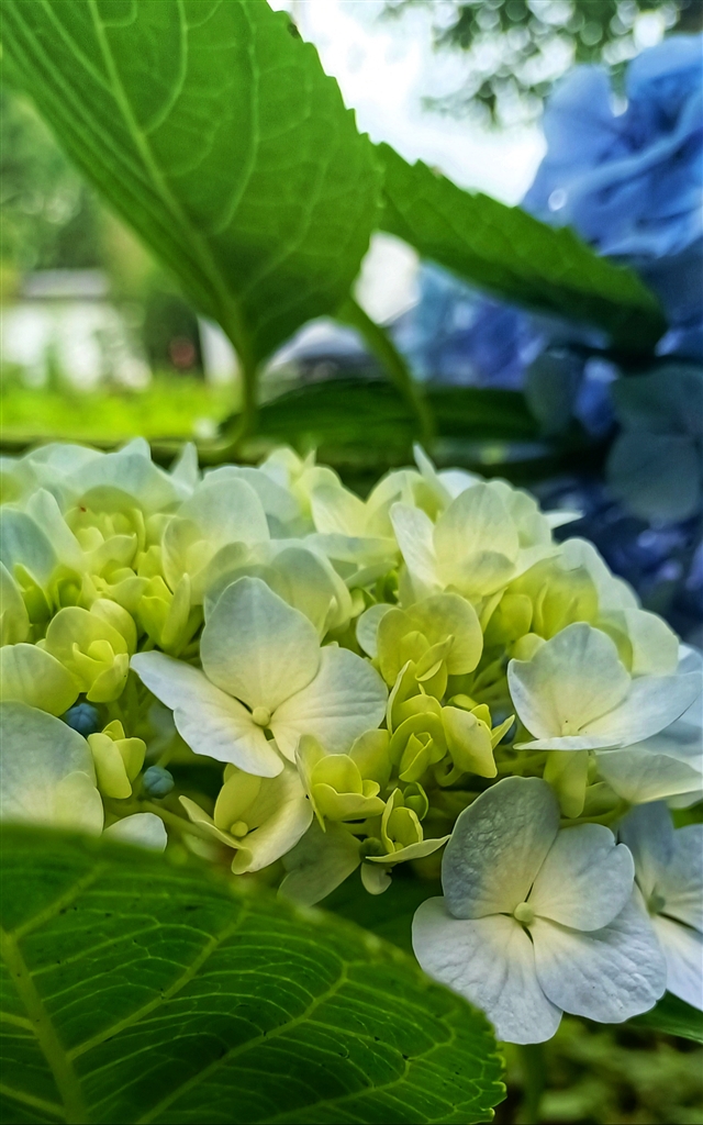 然而,当我们再次与绣球花重逢,有几丛花已然被路人摘取了。只有残留的少许叶片孤独地在风中颤栗,绣球花的根系裸露着被折过后的伤痕。