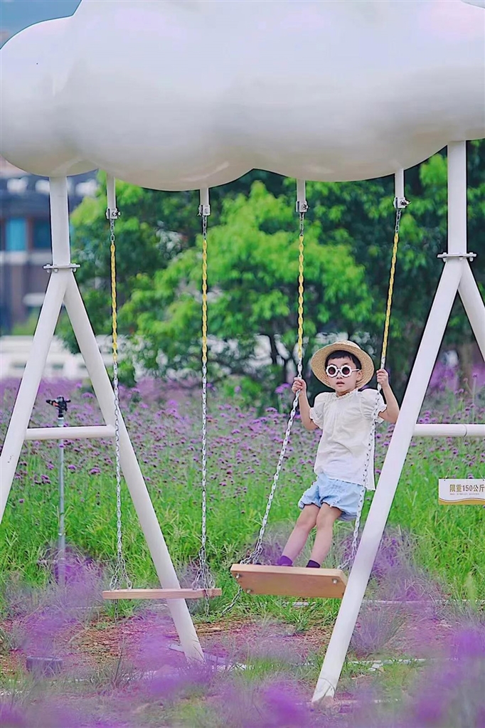 在普陀青石子度假庄园旁,也有一大片马鞭草。紫色花海随风起伏,仿佛大地上延展的紫色梦境,成了这个夏日的主角。站在花海里,普罗旺斯的那一抹抹紫色仿佛就近在咫尺。