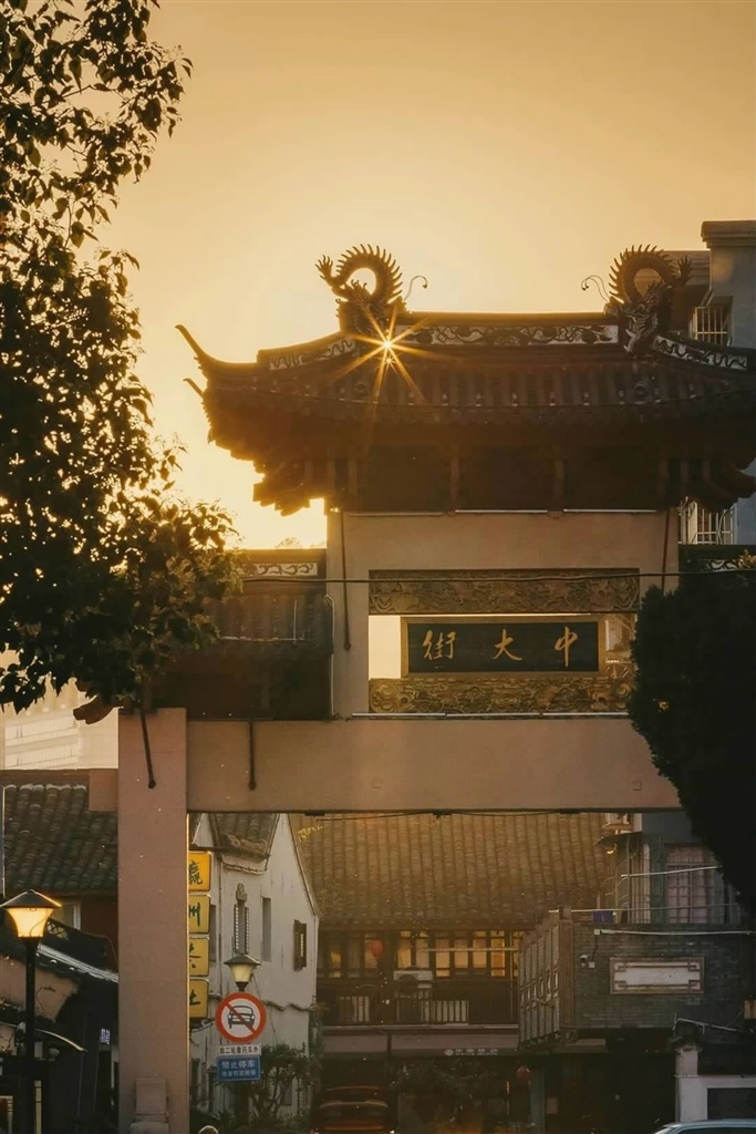 说起古街,大约许多人的第一反应都是定海的中大街。没有钢筋水泥,只有雕梁飞檐,黛瓦白墙和一盏迎风摇晃的红灯笼。穿过斑驳的石壁拱门,中大街两侧的店铺仿佛同这条街一般,在岁月中静默很久。百年糕饼铺、舟山老底子船模……店不大,但朱红的门,旧旧的招牌,都很有故事。茶余饭后,老人们喜欢在沿街的路边“聚会”,几把藤椅,几个旧识,就能轻松度过无尽的时光。