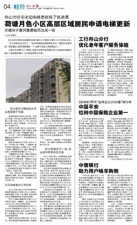 随着《舟山市住宅老旧电梯更新实施方案》于本月5日起实施,我市住建、市场监管等部门迅速启动住宅小区老旧电梯更新工作。目前,新城荷塘月色小区高层区域的居民已经提出了更新申请。“高龄电梯”有序更新,事关老百姓“上上下下”的舒适安全,这项民生工程也是民心工程。