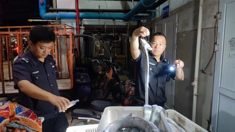 昨天凌晨,市海洋行政执法大队与普陀区海洋行政执法中队联合普陀公安,在舟山国际水产城开展突击夜查。行动中,执法人员查获鲐鱼、带鱼、龙头鱼、墨鱼等各类违禁渔获物27箱共276公斤。这些渔获物与涉案人员,将按照相关法律法规做进一步处理。据了解,伏休以来,我市已查处各类涉渔案件126起,取缔涉渔“三无”船筏101艘,清缴违禁网具6605张,收缴违禁渔获物1083公斤。