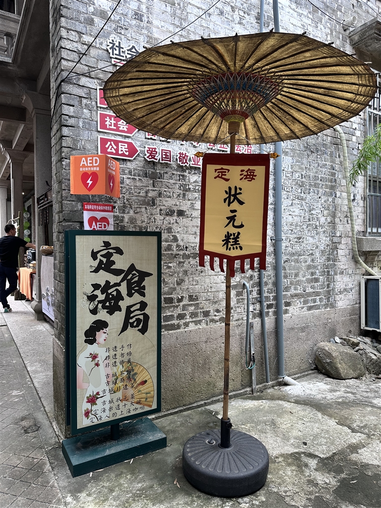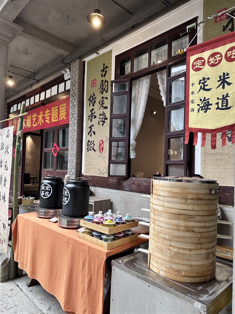 它也是现在的定海非遗馆,除了许多非遗展陈件和非遗剧场、非遗传承人工作室以及非遗课堂之外,还有状元系列的非遗小吃。这里有状元糕、状元馒头、状元饺子、状元茶,甚至状元菜。