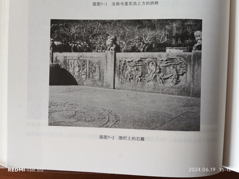 恩斯特·柏石曼在《中国的建筑艺术与宗教文化》中提到了法雨寺海会桥古地雕,“这是一座由汉白玉砌成的单拱桥。桥身正中为一处平台。……即使是鲜有人关注的地面也有一大圈雕刻纹饰”。虽寥寥数语,但也是我第一次看到前人对古地雕的描述。尤为难得的是,恩斯特·柏石曼在插图“围栏上的石雕”这幅照片中也拍到了海会桥面的古地雕的部分图纹。