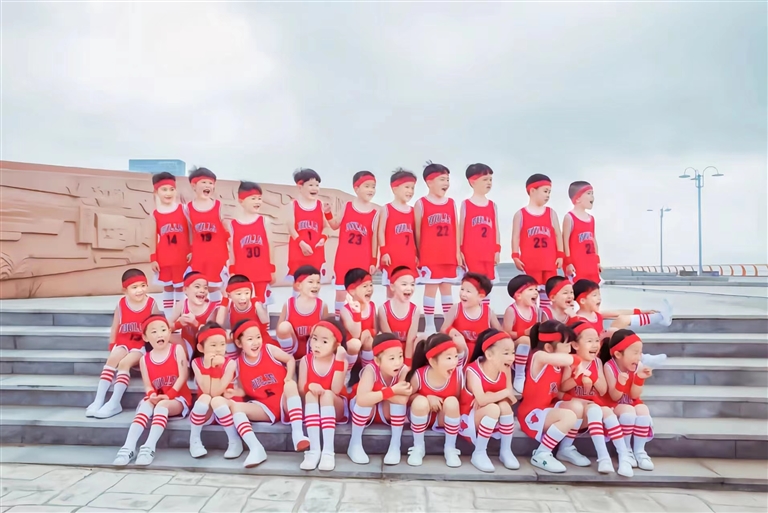 于是,家长们联系了摄影师,还专门请人给孩子们化了妆,特意去东港海滨公园,拍了小博士、民国装和篮球服三套服装。