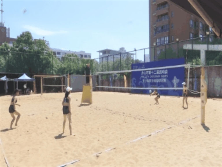 昨天,舟山市第十二届运动会(青少年部)沙滩排球比赛在南海实验学校沙滩排球场开赛。