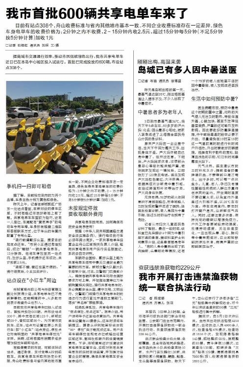 提高城市交通通行效率,推动市民低碳绿色出行,我市首批约600辆共享电单车近日已在本岛中心城区投入试运行。