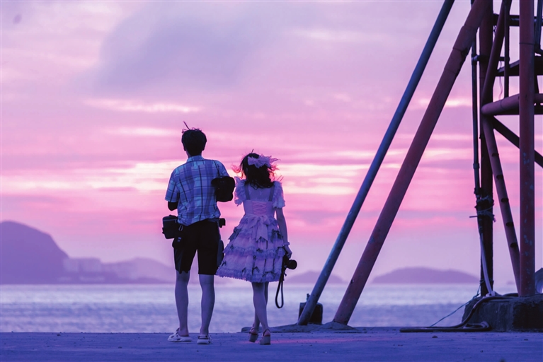 漫步夕阳下的小干岛海边,轻松自在 图/虞莉莉