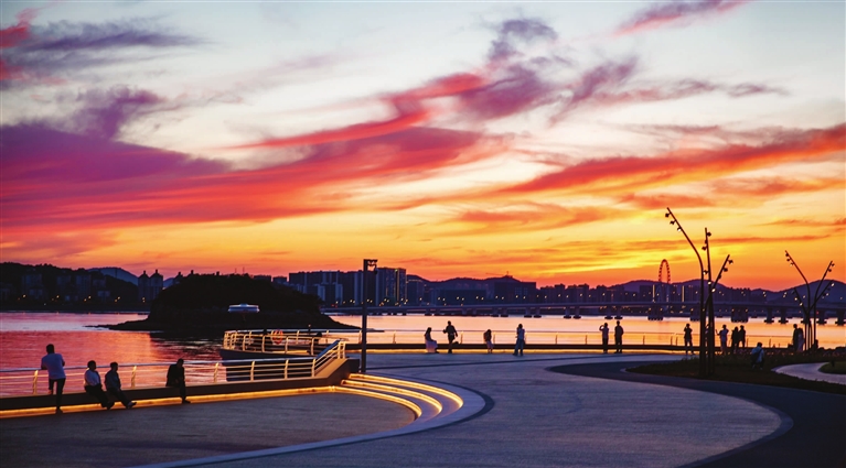 近期岛城晴空万里,想必你的朋友圈已经被绝美的夕阳和晚霞刷了屏吧。海岛的晚霞格外纯净通透、充满诗意。当夕阳西沉,天边染上一层瑰丽的色彩,从金黄、橙红到粉紫,交织成一幅天然的画卷,城市的天际线和岛屿的轮廓在余晖中变得柔和。下班后去海边或者山巅,共赴一场黄昏浪漫之约。
