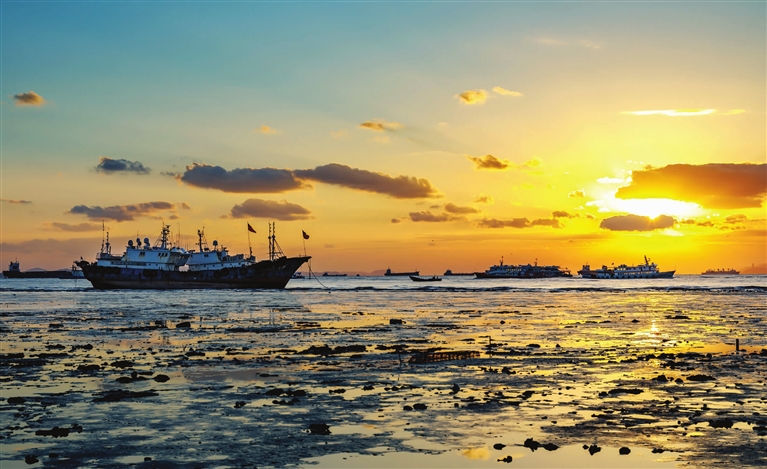 定海岑港,驱车赴山海,牵手观晚霞 图/李鑫华