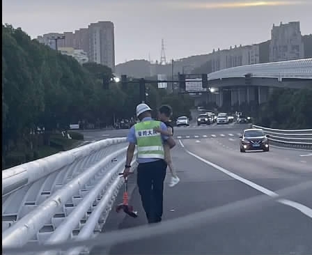 幸被热心司机和交警及时拦下