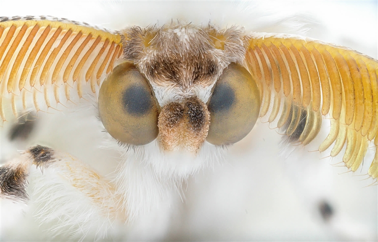 这样一张看似简单的照片,却需要通过五六十张乃至更多的照片堆叠而成。葛恩嘉解释说,这是一种运用景深结合的方式,“微距镜头景深很小,拍出来的照片可能就一点点地方是清晰的,需要像拼图一样,把每一个清晰的部分拼起来,后期电脑合成,一张昆虫照片才能诞生。”