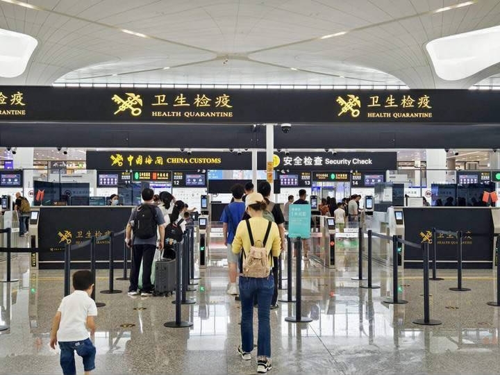 出境游旅客正在出境大厅有序通关