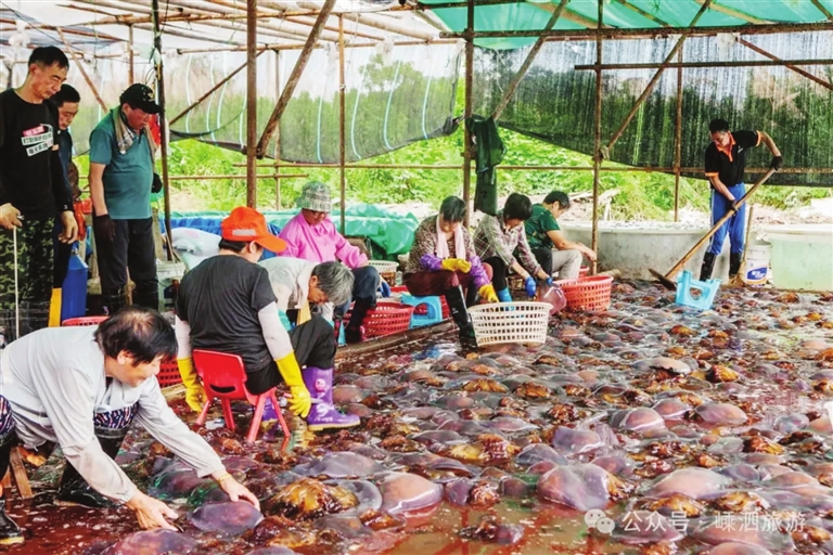 盛夏,嵊泗各岛阳光灿烂,海浪澄澈,在枸杞岛贻贝迎来丰收季之时,洋山岛也开启了海蜇捕捞。洋山渔民又要忙着古法制作三矾海蜇啦。