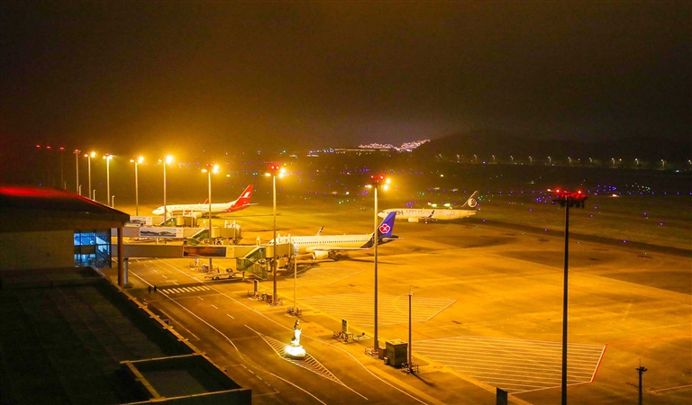 所有飞机起降完成,普陀山国际机场塔台管制员黄书哲凌晨1点45分走出机场,他是当天机场最晚下班的人