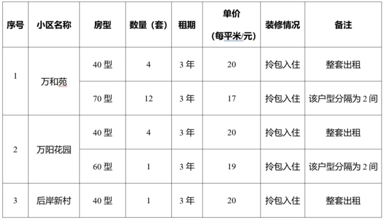 根据保障性租赁住房相关要求,新城推出保障性租赁住房新房源,分别位于万和苑、万阳花园、后岸新村。