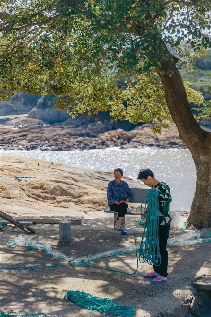 生活在这里的人没有被快节奏的城市发展所影响,坦然悠闲,晒鲞、织网……做着传统的渔活儿。步履不紧不慢,日子也有滋有味。