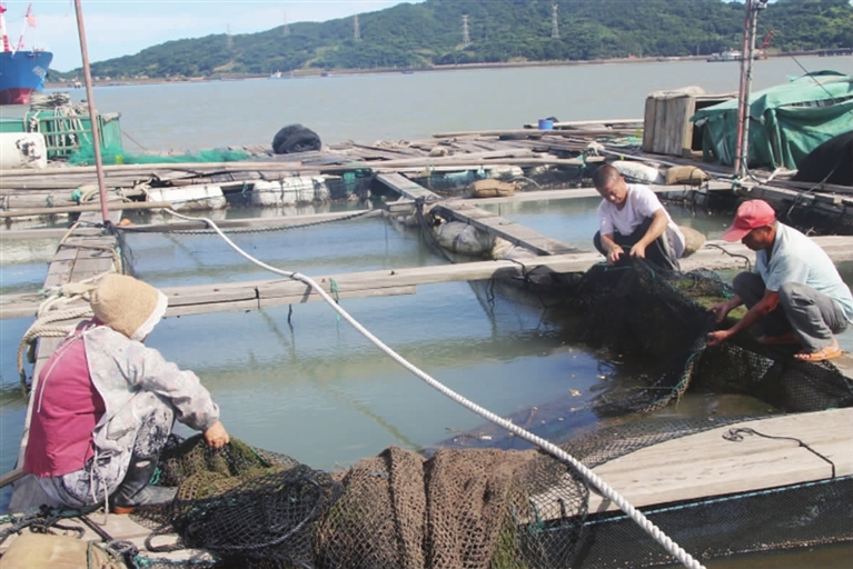 连日来,普陀区六横镇台门渔港的网箱养殖户为应对“格美”台风集中精力做好网箱加固、新旧网具更换、养殖鱼类管理等工作。