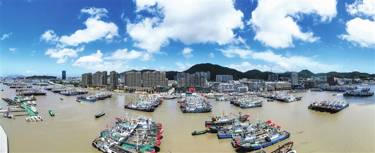 昨天,受今年第3号台风“格美”(超强台风级)影响,沈家门渔港内樯桅林立,渔船纷纷回港避风 通讯员 姚峰 摄