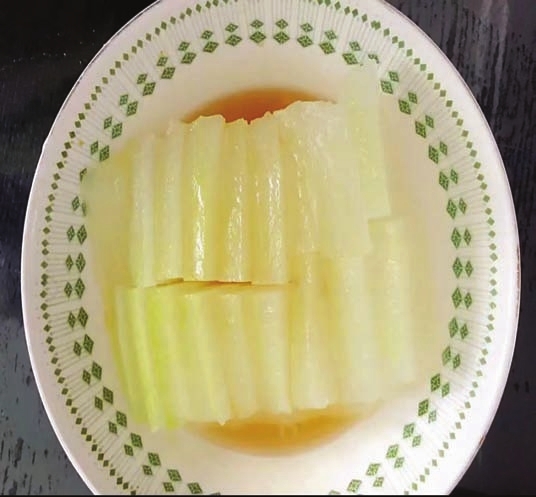 如今家家户户住着楼房,大瓮也不常有了,她老妈就把腌冬瓜的步骤简化了一下,口味上也会更清淡一些:洗干净切好的冬瓜加冷水在锅里煮,但不要煮太烂,捞出来在冬瓜表面撒上细盐,晾凉之后放到冰箱冷藏,24小时以后就可以吃了。