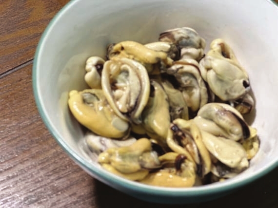 新鲜刚煮出来的淡菜,中午便是一餐。吃不完的淡菜,张琴会把它们挨个剥出壳来,装到小碗里,均匀地撒上一把盐,放到冰箱里冷藏起来。晚上下班回来,这道盐渍淡菜又是浑然天成的下饭菜,咸咪咪,“韧结结”,一口咬下去,是淡菜的鲜美咸香。