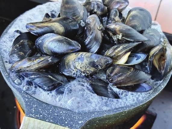 煮淡菜其实简单,洗好的淡菜往锅里一倒,盖上锅盖,开上大火。火苗舔舐着锅底,热气氤氲中,原本闭合的淡菜,一只一只地开启。识别它熟了没有,只需要看它的口子有没有张开就好。