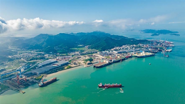 2013年,华东地区最大的铁矿石中转码头运营商——武港码头在六横试运营;十余年时间,武港码头累计吞吐量近3亿吨,六横成为华东地区重要的煤炭中转基地和大宗物资交易储运基地;
