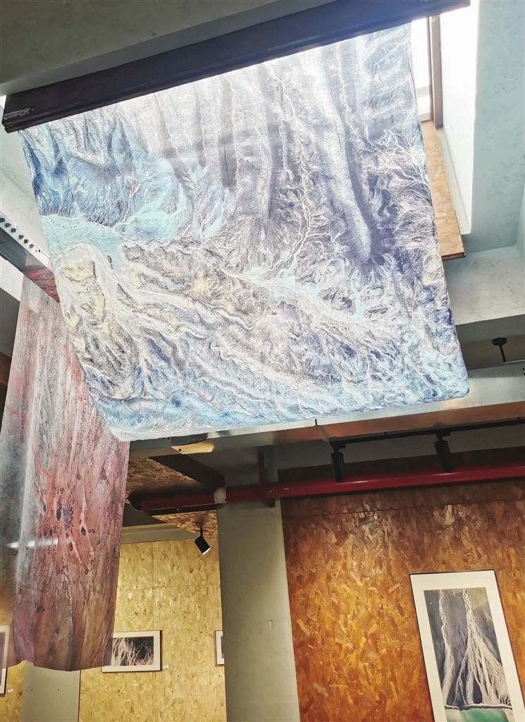 金中青的影像作品是作者“从中西审美的多个视角对200余张图像进行电脑编辑设计,产生了类油画和类中国画的图式与意境的新视觉影像”。简单地说,是大师使用太空飞行器拍摄的遥感影像,再通过当今信息时代才有的电脑工具编辑加工而成的作品。