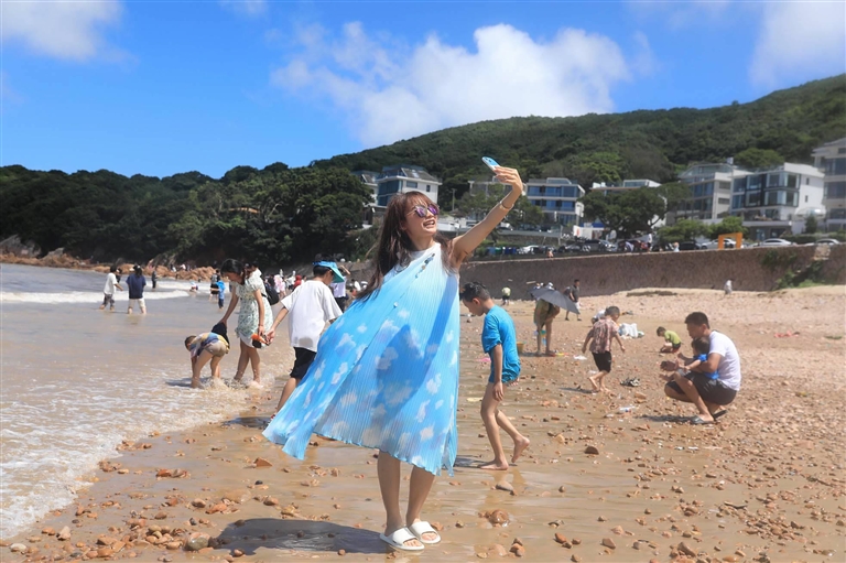 昨天,朱家尖樟州小兰头沙滩迎来众多游客。近年来,当地结合“千万工程”对樟州进行整体打造,提升改造后的樟州焕发新的活力。