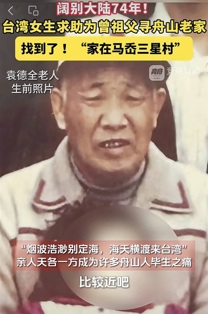 台湾女生为曾祖父袁德全寻找舟山亲人有结果了
