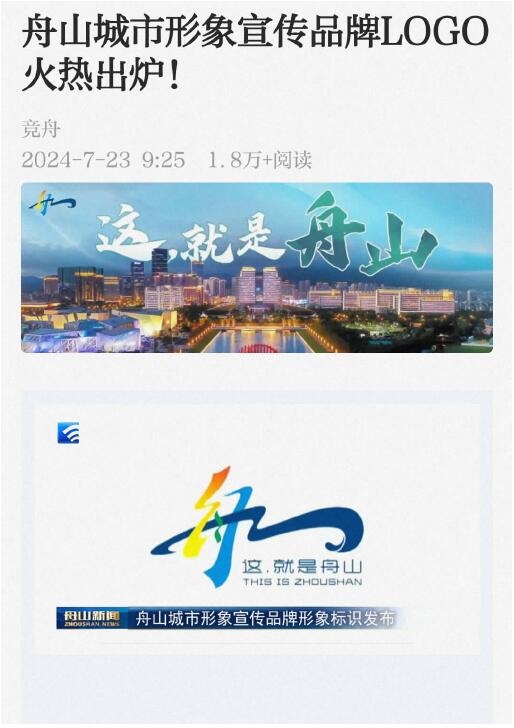 城市形象标识(LOGO)是彰显城市精神、展示文化特性、传播城市形象的符号载体。试看舟山城市形象宣传品牌LOGO:4根飞扬的彩带组成“舟山”二字,其中黄绿蓝象征城市烟火,深蓝色块既是“山”字的变体,又代表潮起潮落的海面,呈现出千岛儿女耕海牧渔、奋力建设现代海洋城市的壮美图景,也展现了勇立潮头、勇争上游的舟山精神。