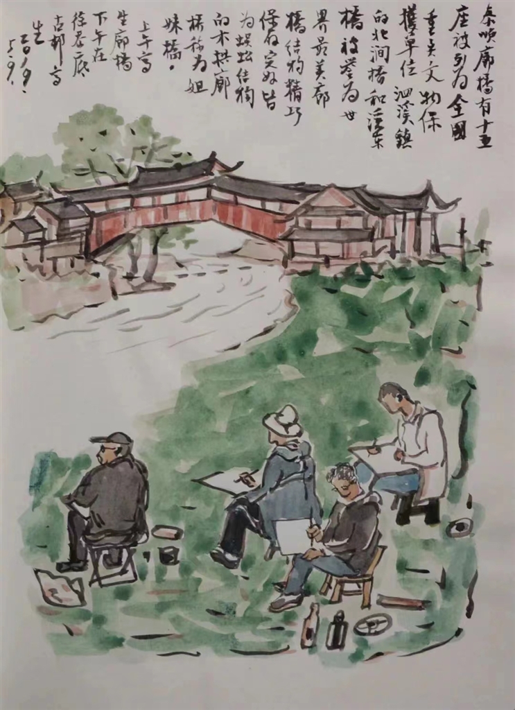 而这样的记录对徐锋的创作也不无帮助。“我原先是画山水的,不画人物,但是记事以后,开始关注起了人,人的表情动态、动作等,发现了很多以前不曾关注的细节。”徐锋开玩笑说,自己以画记事就和年轻人中流行的手账一样。