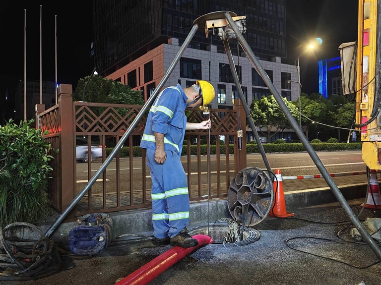 “为了减少对市民出行的影响,我们选择在夜间施工,通常从晚上7点半开始,一直忙到凌晨两三点。”现场负责人田帅站在井口旁,目光紧随着下井的每一位工人,他介绍道:“虽然辛苦,但看到修复后的管网能够顺畅排水,为城市安全贡献一份力量,我们觉得一切都值得。”