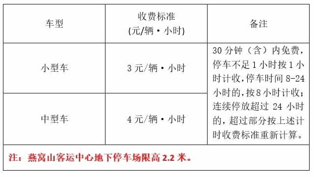 根据岱山县发展与改革局《关于完善机动车停放服务收费管理的通知》(岱发改价格〔2020〕6号)文件,燕窝山客运中心地下停车场自动计费收费标准如下。