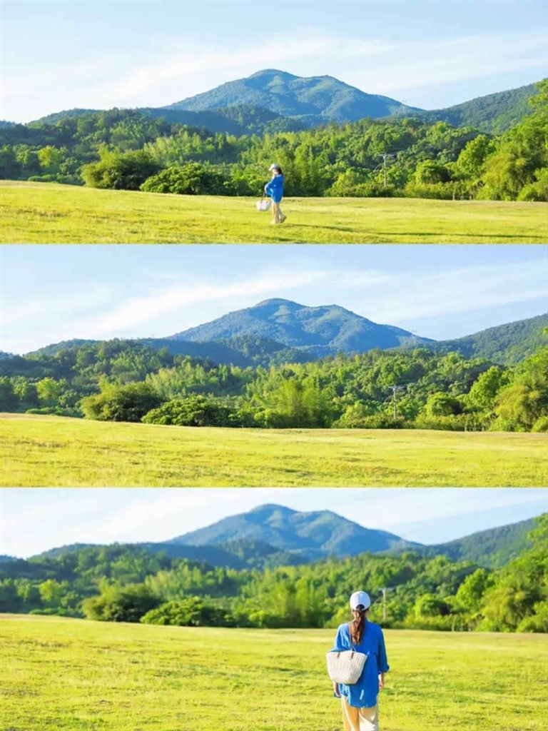 比如想看同款大草原,可以去东海云廊。在云廊7号口的不远处就能看到宽阔的草坪,如同一幅明艳的绿色画卷。山是起伏的,绿也跟着流动。阿勒泰的原野自然灵动,这里的草海也文艺清新。想去的市民,可以导航至“东海云廊7号口”。