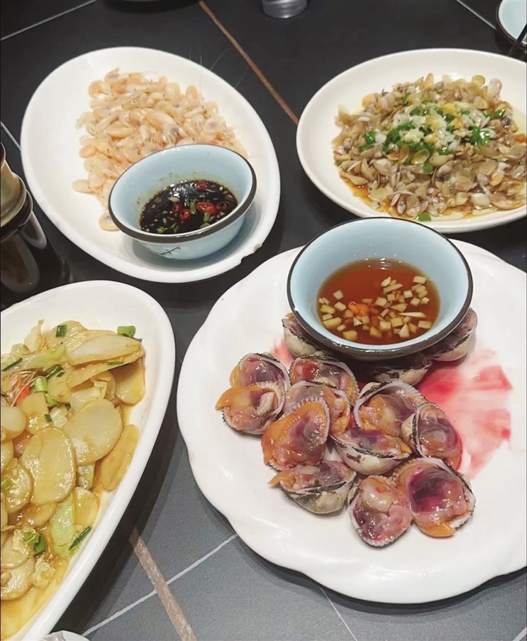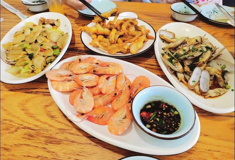 这样的理念贯穿至今,今年上半年,金海湾的第二家店在自在海开门迎客。依然主打品质,除了先前的海鲜特色,还多了一些舟山老底子烧法的舟山菜,同样受到游客好评。