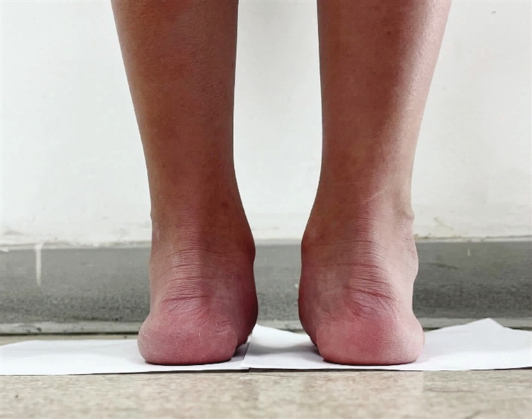 原来去年夏天起,初中生毛毛(化名)一走路就抱怨两只脚累、痛,妈妈观察几天后发现孩子竟是“平脚板”,还伴有“八字脚”。今年一放暑假,妈妈带着毛毛找到了市中医院足踝外科、小儿骨科主任马一平,希望可以帮助孩子改善这一情况。马一平接诊后,仔细检查了毛毛的足部,最后确诊其是青少年平足症,且双脚同时发病。