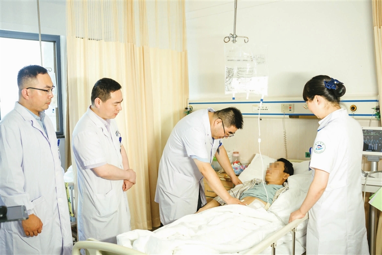 由于小沈腹腔内肠内容物漏出及严重出血,腹腔脏器炎症水肿严重,手术术区视野暴露很差,而张英杰团队凭借丰富的腹部外科经验、高超的手术技术和过硬的心理素质,5个多小时紧张施术后,顺利完成了胰十二指肠切除和肝多发破裂修补术。术后第二天,小沈就从ICU转回普通病房,又经过两个月的治疗,康复出院。
